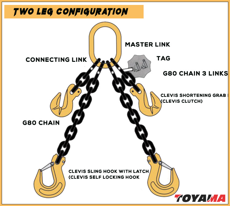* These 2 leg chain slings are suitable for lifting objects that require two hooks