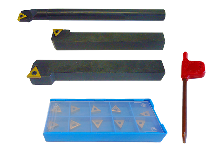 Set contains one right hand and left hand turning tool one right hand boring bar and ten ISO inserts to suit.